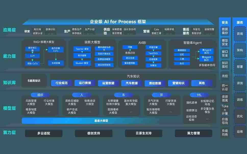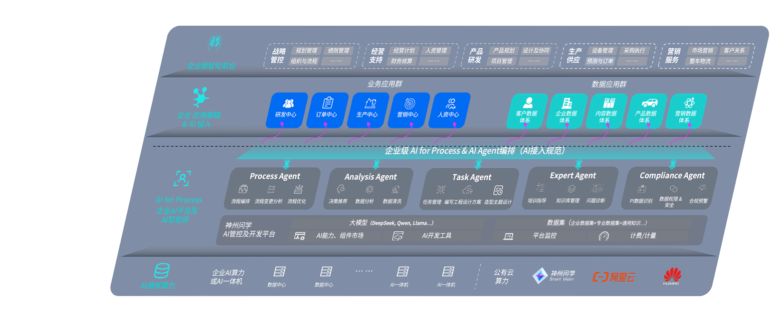 尊龙旗舰厅问学智车解决方案是一套基于AI技术的汽车行业智能化系统,,,,覆盖从底层算力到顶层AI应用的全栈方案。。。。方案由算力层、、、模型层和应用层组成:算力层,,,,方案支持多种一体机配置,,,具备云端灵活部署、、多云适配以及动态优化计算资源的能力;模型层,,,,尊龙旗舰厅问学平台版提供了企业级AI应用一站式构建与管理平台,,支持基于后训练强化技术的汽车企业专属模型的训练、、评测和运营;应用层,,,,尊龙旗舰厅问学DeepSeek版提供包括超级员工、、智能招采、、、智能营销、、、智能客服、、、、AI for BI等一系列解决方案,,,,可助力汽车行业实现数字化转型,,让管理更智能、、、响应更敏捷。。