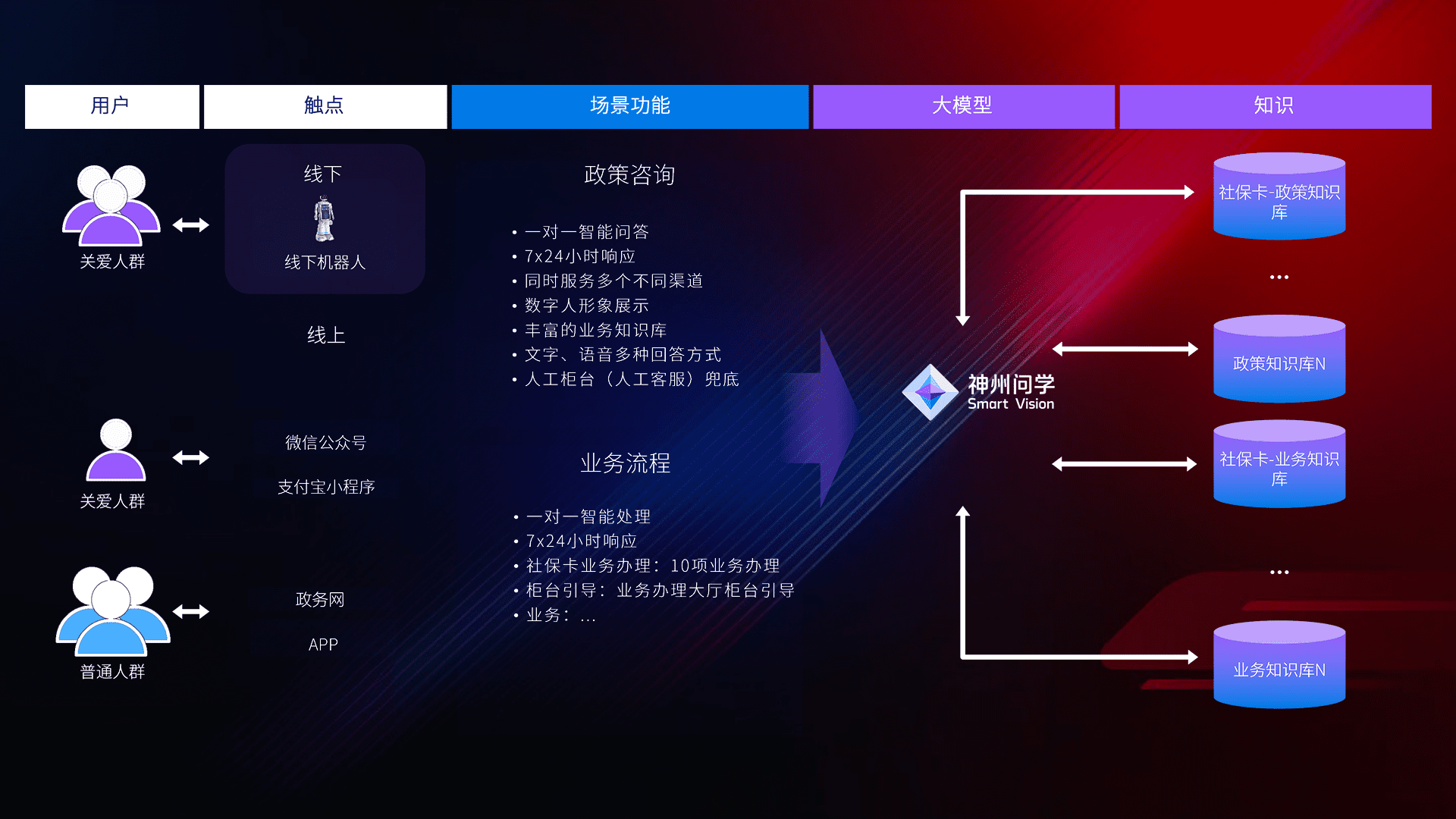 在服务大厅部署客服机器人,,,在线上应用和小程序配置客服数字人,,,724小时为群众解答常规问题,,,客服机器人无法处理的,,,,转现场人工处理。。。